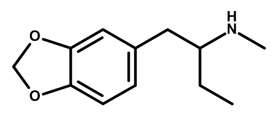 Molecular structure of 1-(1,3-benzodioxol-5-yl)-N-methylbutan-2-amine (MBDB).